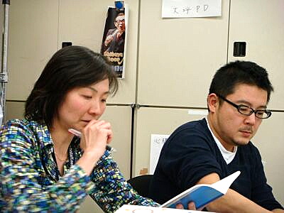 ガンコな生田ディレクターが取材、編集したVTRを見ながら、打ち合わせが進む。番組の挿入曲を作って下さっている村井秀清さんがいらした。住吉美紀さん、有吉伸人さんと一緒に村井さんと写真を撮る。